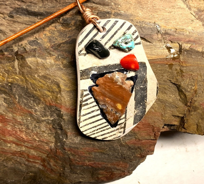 Ancient Pottery Shard & Arrow Point Pendant – Southwestern Artifact Necklace